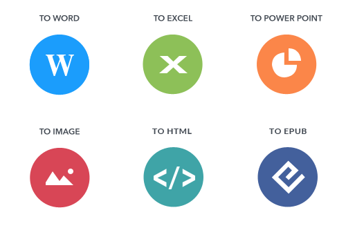 Converte PDF in Word, Excel, PowerPoint, HTML, RTF, Txt, EPUB, e file immagine (JPG, GIF, PNG, BMP, TIFF) |